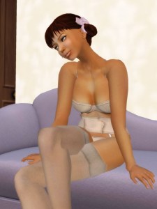 With the Mile High lingerie I’m wearing Dutch Touch’s Amber skin and the Aphro hair from Another Level.